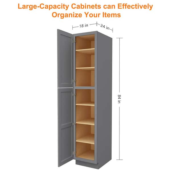 Questions and Answers for HOMEIBRO 18 in. W x 24 in. D x 84 in. H in Shaker Grey Plywood Ready to Assemble Floor Wall Pantry Kitchen Cabinet
