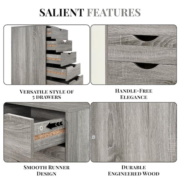 Questions and Answers for HOMESTOCK 5-Drawer Gray Oak 26 in. H x 16 in. W x 16 in. D Wood Lateral File Cabinet