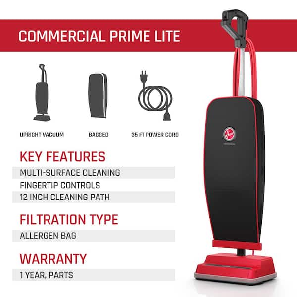 Be the first to ask a question for HOOVER COMMERCIAL Commercial Prime Lite,Bagged, Corded, HEPA Filter, Professional Upright Vacuum Cleaner for Carpet and Hard Floors, Black