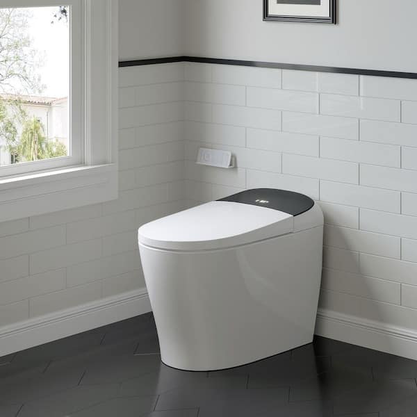 Questions and Answers for HOROW Tankless Elongated Bidet Toilet 1.27 GPF in White with Black Backlid, Auto Flush, Warm Air Dryer, Bubble Infusion Wash