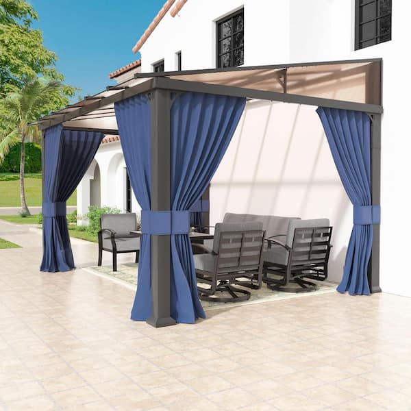 Questions and Answers for Halmuz 10 ft. x 12 ft. Gray Hardtop Sloping Pitched Roof Gazebo with Curtain Navy Blue