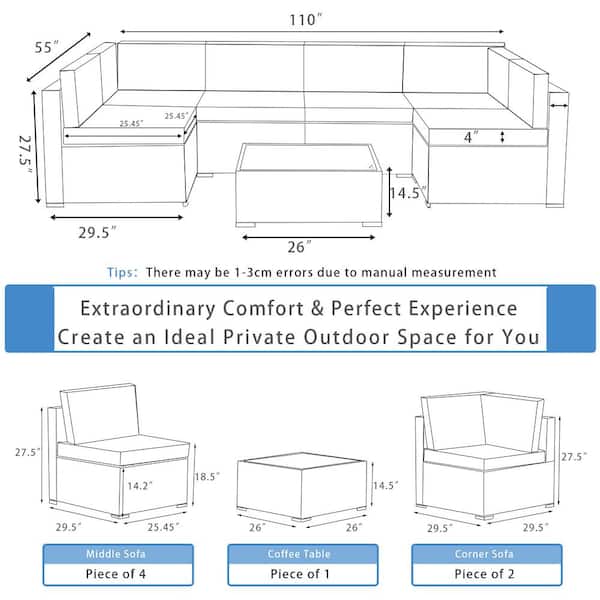 Questions and Answers for Halmuz 7-Piece Wicker Outdoor Sectional Set with Cushion Navy Blue