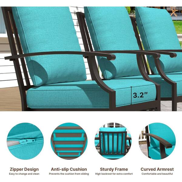 Questions and Answers for Halmuz Brown Swivel Metal Outdoor Dining/Restaurant Rocking Chairs with Vertical Back and Blue Cushions (2-Pack)