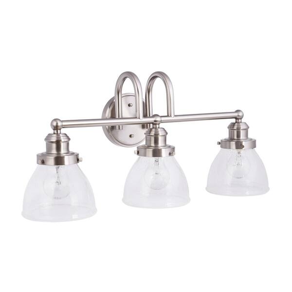 Questions and Answers for Hampton Bay Albona 3-Light Brushed Nickel Vanity Light with Clear Seeded Glass Shades