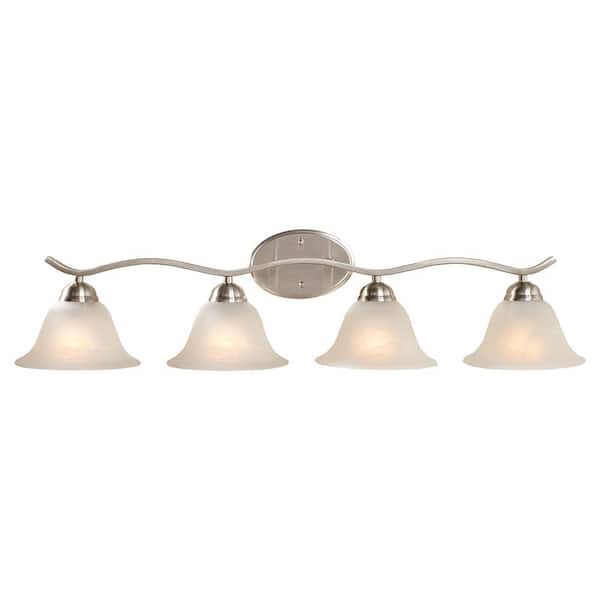 Questions and Answers for Hampton Bay Andenne 34.3 in. 4-Light Transitional Brushed Nickel Bathroom Vanity Light Fixture with Marbleized Glass Shades