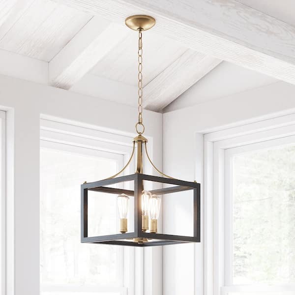 Questions and Answers for Hampton Bay Boswell Quarter 14 in. 3-Light Gold Farmhouse Square Chandelier with Black Distressed Wood Accents for Kitchens