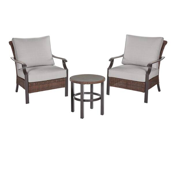 Questions and Answers for Hampton Bay Harper Creek 3-Piece Brown Steel Outdoor Patio Chair Set with CushionGuard Stone Gray Cushions