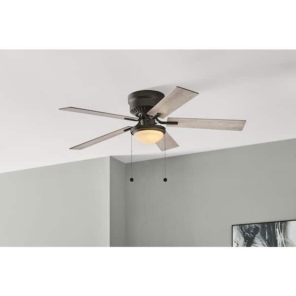 Questions and Answers for Hampton Bay Hugger II 52 in. Indoor Oil Rubbed Bronze Low Profile Ceiling Fan with 2 LED Bulbs Included