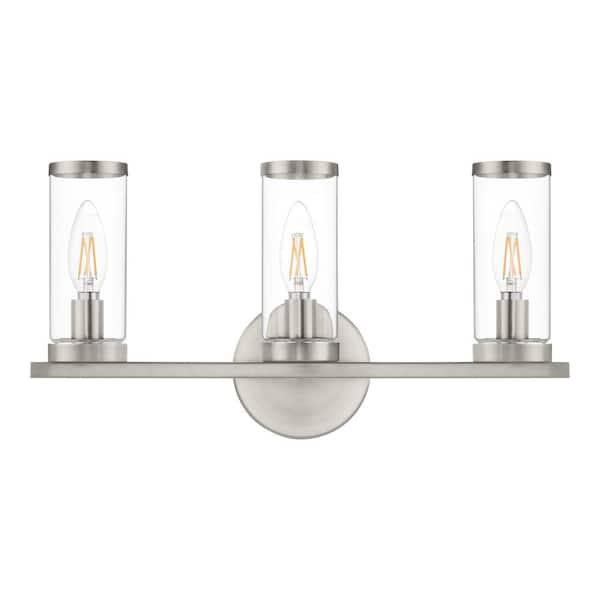 Questions and Answers for Hampton Bay Loveland 16.625 in. 3-Light Brushed Nickel Bathroom Vanity Light Fixture with Clear Glass Shades