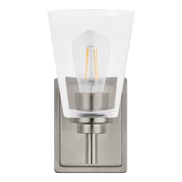 Questions and Answers for Hampton Bay Wakefield 5.25 in. 1-Light Brushed Nickel Modern Wall Sconce with Clear Glass Shade