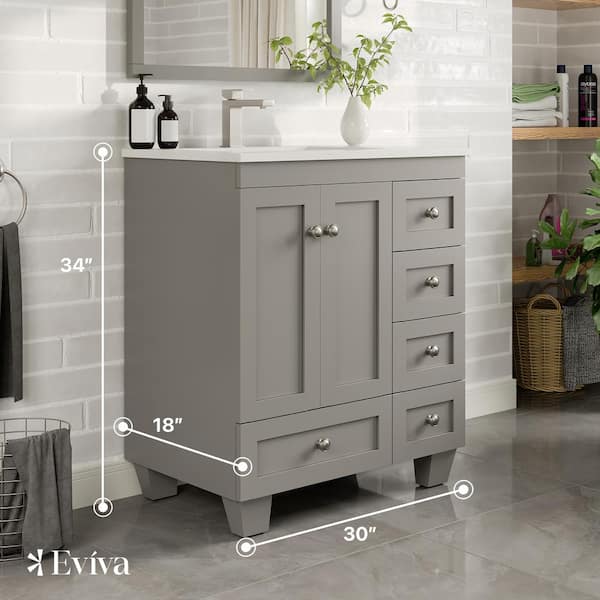 Questions and Answers for Eviva Happy 30 in. Single Sink Gray Bath Vanity with White Carrara Quartz Top (Assembled)