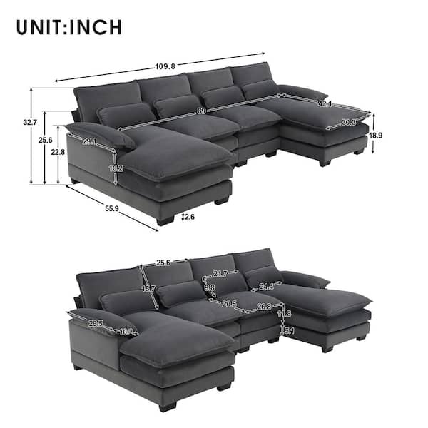 Be the first to ask a question for Harper & Bright Designs 109.8 in. W Flared Arm Modern U Shaped Soft Velvet Sectional Sofa in. Gray with Waist Pillows