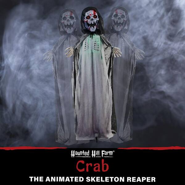 Be the first to ask a question for Haunted Hill Farm 6 ft. Crab the Animated Skeleton Reaper with Moving Rib Cage, Indoor/Covered Outdoor Halloween Decoration