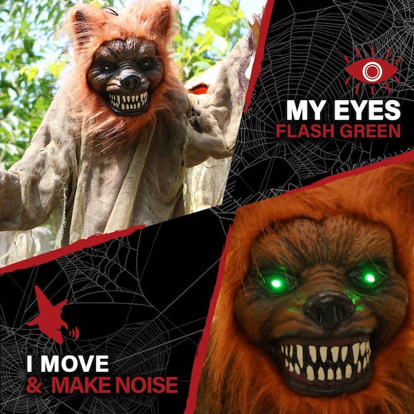Be the first to ask a question for Haunted Hill Farm 62 in. Poseable Standing Wolf with Green Led Eyes Halloween Prop