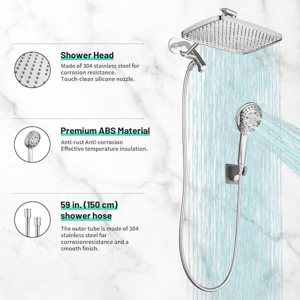 Rain Shower Head Kits 8-Spray with 1.8 GPM 12 in. Wall Mount Dual Shower Heads and Handheld Shower Head in Chrome