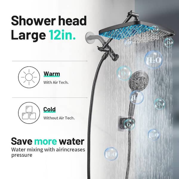 Rain Shower Head Kits 8-Spray with 1.8 GPM 12 in. Wall Mount Dual Shower Heads and Handheld Shower Head in Matte Black