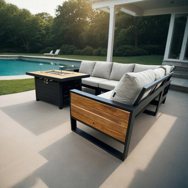 Be the first to ask a question for HiGreen Outdoor Denver 5-Piece Black Aluminum Outdoor Patio Fire Pit Deep Sectional Seating Set with Cast Ash Cushions