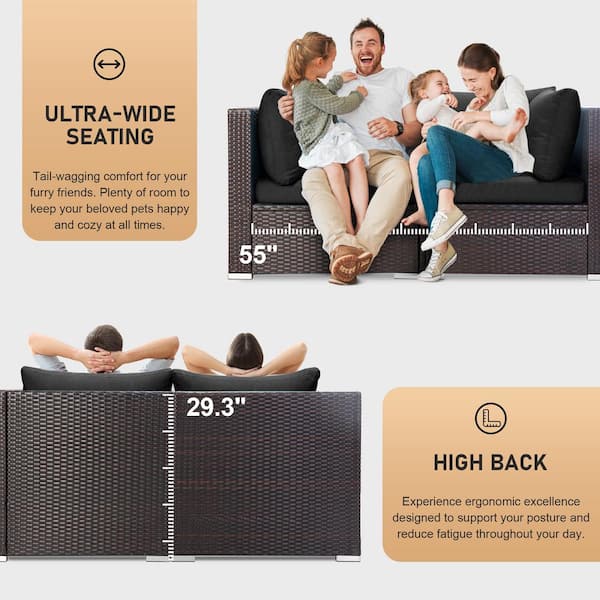 Questions and Answers for High Back Brown 7-Piece Wicker Patio Conversation Sectional Deep Seating Set with Fire Pit Table and Black Cushions