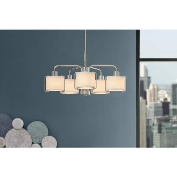 Questions and Answers for Home Decorators Collection Brookley 5-Light Brushed Nickel Shaded Chandelier with White Fabric Shades