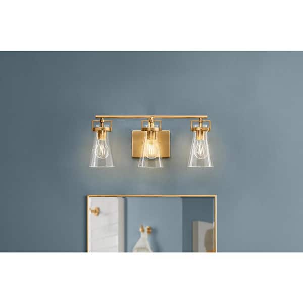Be the first to ask a question for Home Decorators Collection Clermont 22 in. 3-Light Satin Brass Bathroom Vanity Light with Seeded Glass Shades