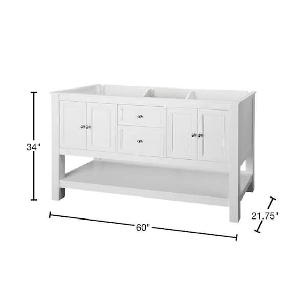 Questions and Answers for Home Decorators Collection Gazette 60 in. W x 21.75 in. D x 34 in. H Bath Vanity Cabinet without Top in White
