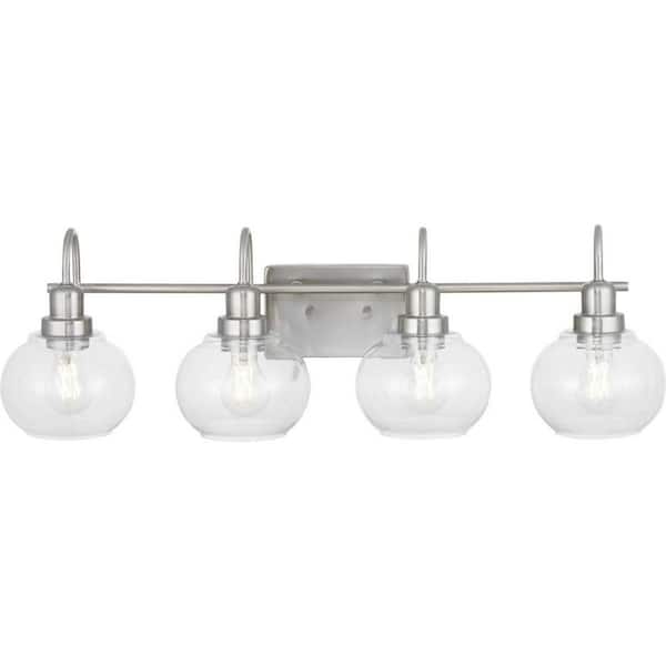 Questions and Answers for Home Decorators Collection Halyn 31.375 in. 4-Light Brushed Nickel Bathroom Vanity Light with Clear Glass Shades