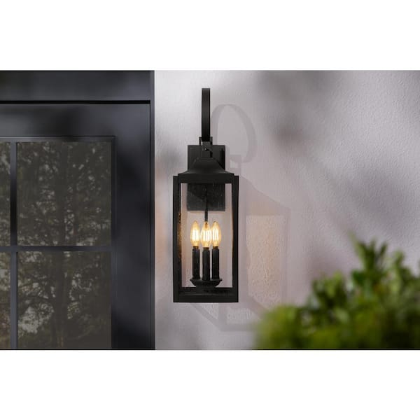 Questions and Answers for Home Decorators Collection Havenridge 23.2 in. 3-Light Matte Black Hardwired Outdoor Wall Light Lantern Sconce with Clear Seeded Glass (1-Pack)