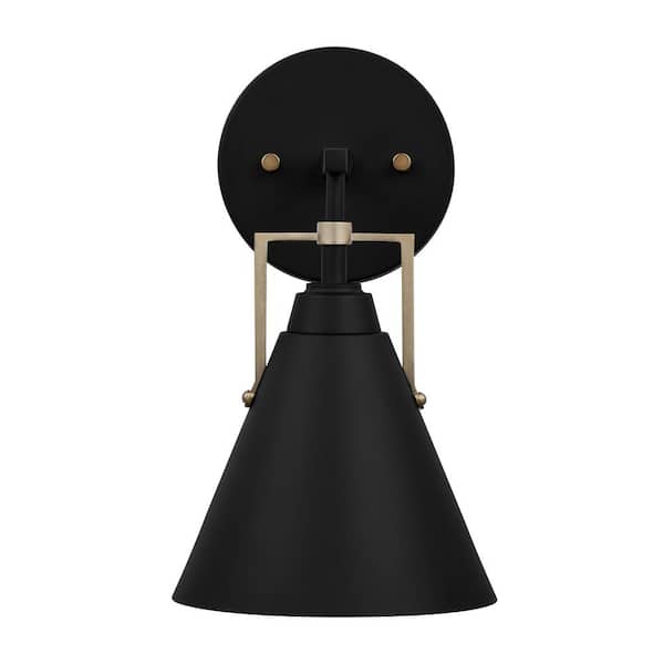 Questions and Answers for Home Decorators Collection Insdale 1-Light Matte Black Modern Bathroom Vanity Light with Satin Brass Accents