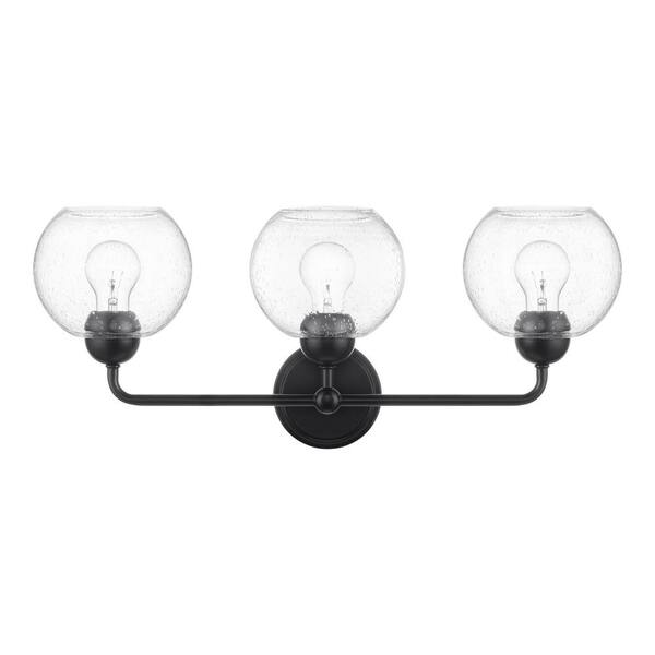 Be the first to ask a question for Home Decorators Collection Jill 24 in. 3-Light Black Vanity Light with Clear Seeded Glass Shade