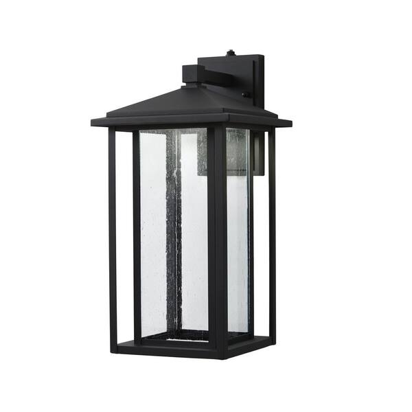 Questions and Answers for Home Decorators Collection Mauvo Canyon 18 in. Black Dusk to Dawn Large LED Outdoor Wall Light Fixture Sconce with Seeded Glass