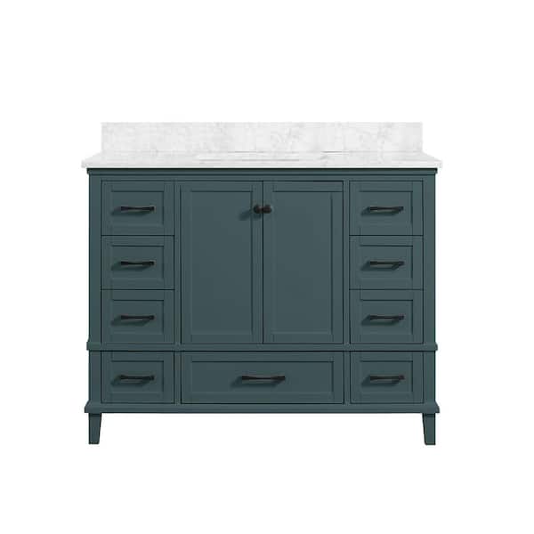 Questions and Answers for Home Decorators Collection Merryfield 43 in. Single Sink Antigua Green Bath Vanity with White Carrara Marble Top (Assembled)