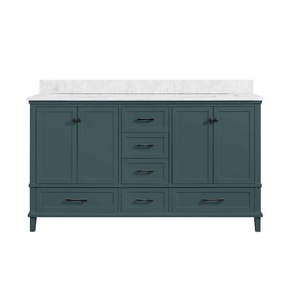 Questions and Answers for Home Decorators Collection Merryfield 61 in. Double Sink Antigua Green Bath Vanity with White Carrara Marble Top (Assembled)
