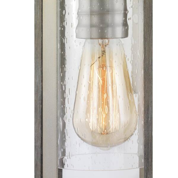 Questions and Answers for Home Decorators Collection Palermo Grove 12.5 in. 1-Light Antique Nickel Rustic Farmhouse Outdoor Wall Lantern with Weathered Gray Wood Accents