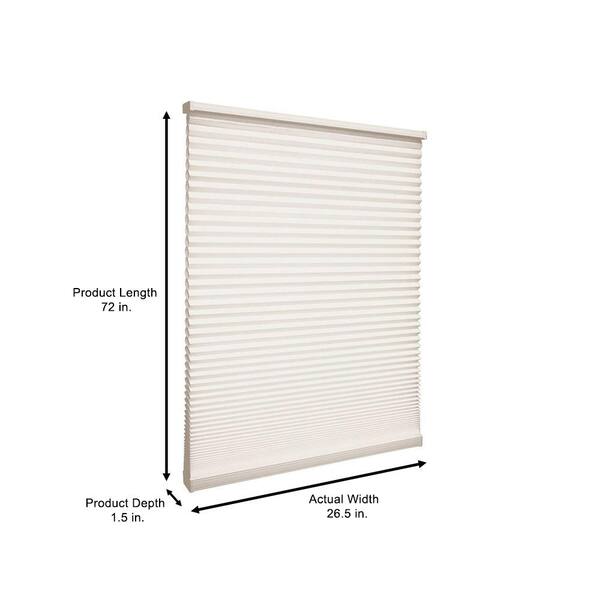 Questions and Answers for Home Decorators Collection Parchment Cordless Light Filtering Cellular Shades for Windows - 26.75 in W x 72 in L (Actual Size 26.5 in W x 72 in L)