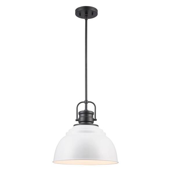 Be the first to ask a question for Home Decorators Collection Shelston 13 in. 1-Light Black and White Farmhouse Pendant Light Fixture with Metal Shade