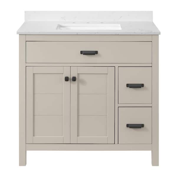 Questions and Answers for Home Decorators Collection Stanhope 37 in. Single Sink Even Better Beige Bath Vanity with Carrara White Engineered Stone Top (Assembled)