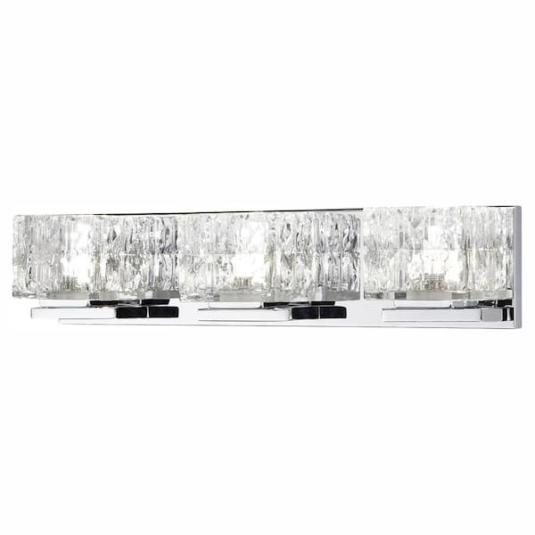 Questions and Answers for Home Decorators Collection Tulianne 75-Watt Equivalent 3-Light Chrome LED Vanity Light with Clear Cube Glass
