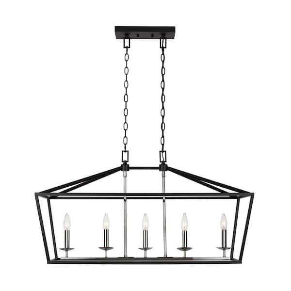 Questions and Answers for Home Decorators Collection Weyburn 36 in. 5-Light Black and Polished Chrome Farmhouse Linear Chandelier Light Fixture with Caged Metal Shade