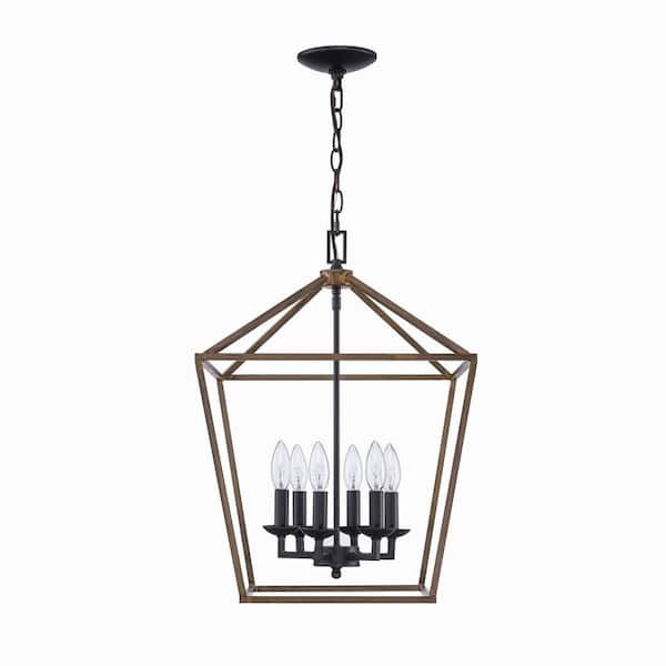 Questions and Answers for Home Decorators Collection Weyburn 6-Light Black and Faux Wood Farmhouse Chandelier Light Fixture with Caged Metal Shade