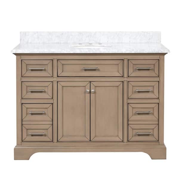 Questions and Answers for Home Decorators Collection Windlowe 49 in. Single Sink Almond Taupe Bath Vanity with White Carrara Marble Top (Assembled)