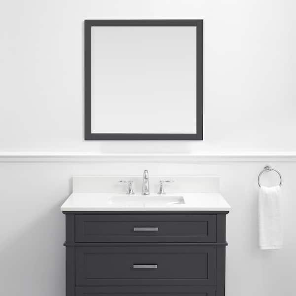 Questions and Answers for Home Decorators Collection Woodfall 34 in. W x 34 in. H Square Framed Wall Mount Bathroom Vanity Mirror in Dark Charcoal