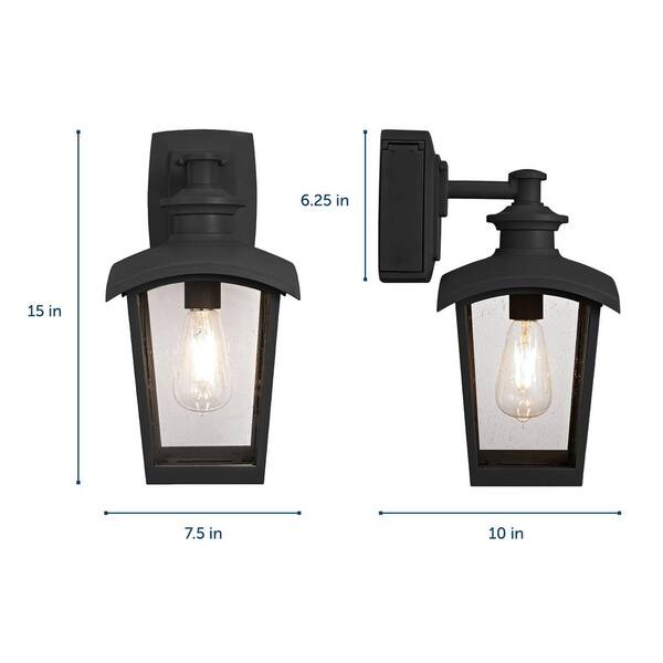 Questions and Answers for Home Luminaire 1-Light Black Outdoor Wall Coach Light Sconce with Seeded Glass and Built-In GFCI Outlets