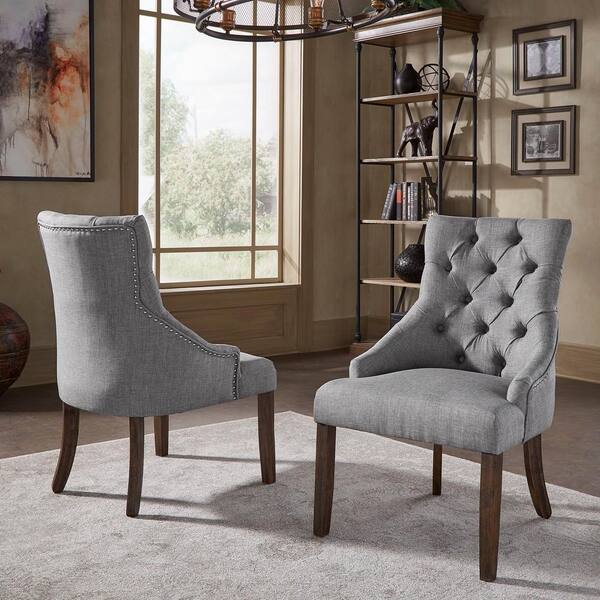 Questions and Answers for HomeSullivan Grey Linen Curved Back Tufted Dining Chair (Set of 2)