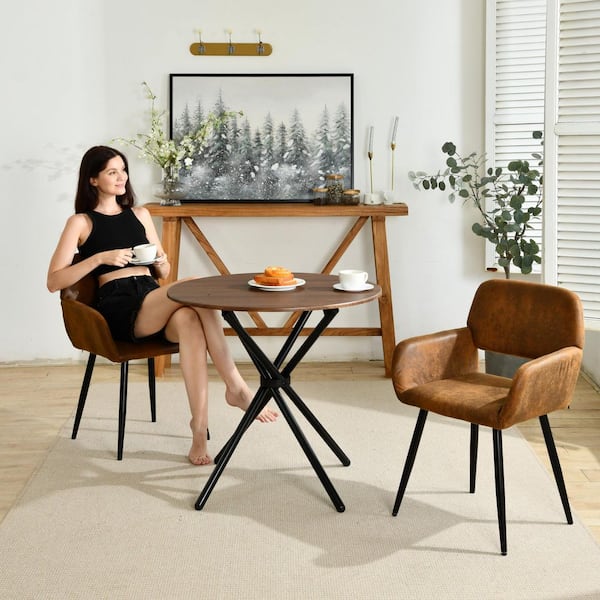 Questions and Answers for Homy Casa MAFONTANA Modern 3-Piece Mocha Walnut Wood Top Round Bistro Table Set with 2 Brown Armchairs (Seats 2)
