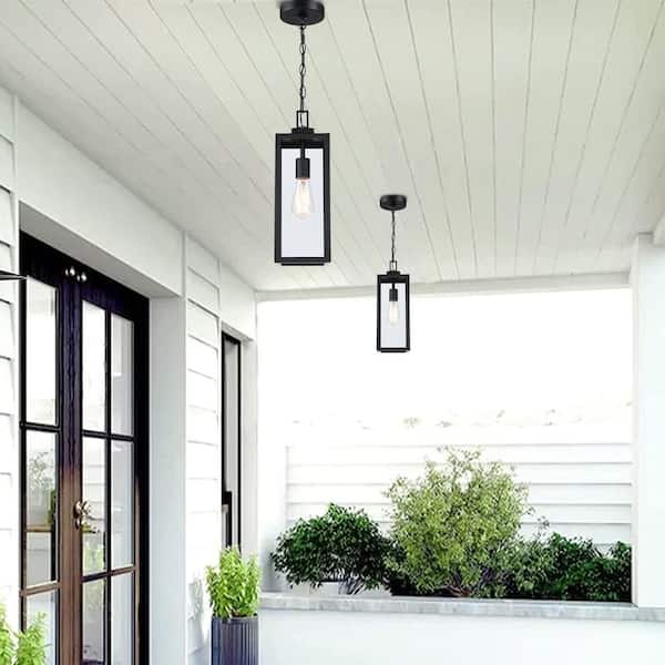 Questions and Answers for Hukoro 1-Light Matte Black Outdoor Hanging Lantern Pendant Light with Clear Glass (2-Pack)