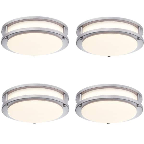 Hanz 10 in. Brushed Nickel Selectable LED 2700K, 3000K, 3500K, 4000K, 5000K Flush Mount Ceiling Light(4-Pack)