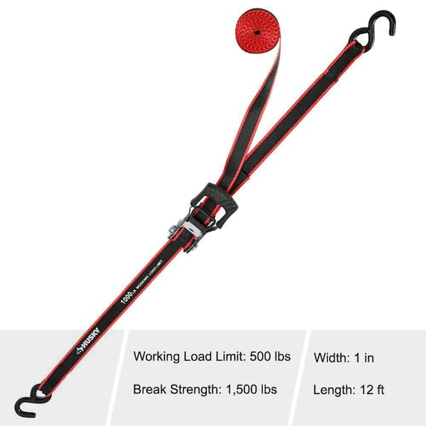 Questions and Answers for Husky 1 in. x 12 ft. Ratchet Tie-Down Straps with S Hook (4-Pack)