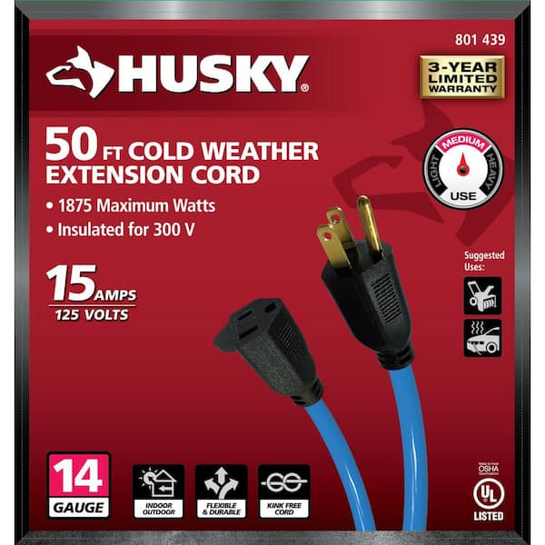 Questions and Answers for Husky 50 ft. 14/3 Medium Duty Cold Weather Indoor/Outdoor Extension Cord, Blue