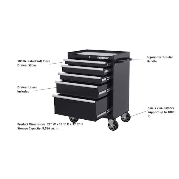 Questions and Answers for Husky Tool Storage 27 in. W x 18 in. D 5-Drawer Gloss Black Rolling Tool Cabinet