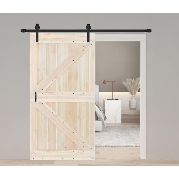Questions and Answers for ISLIFE K Style 42 in. x 84 in. Unfinished Soild Wood Sliding Barn Door with Hardware Kit - Assembly Needed